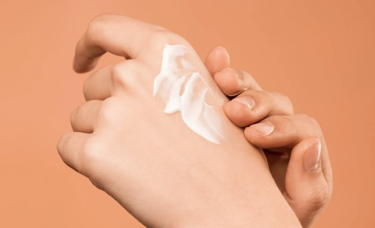 3.シカペアクリームを適量取り、手のひらで肌を包み込むようにして吸収させる。